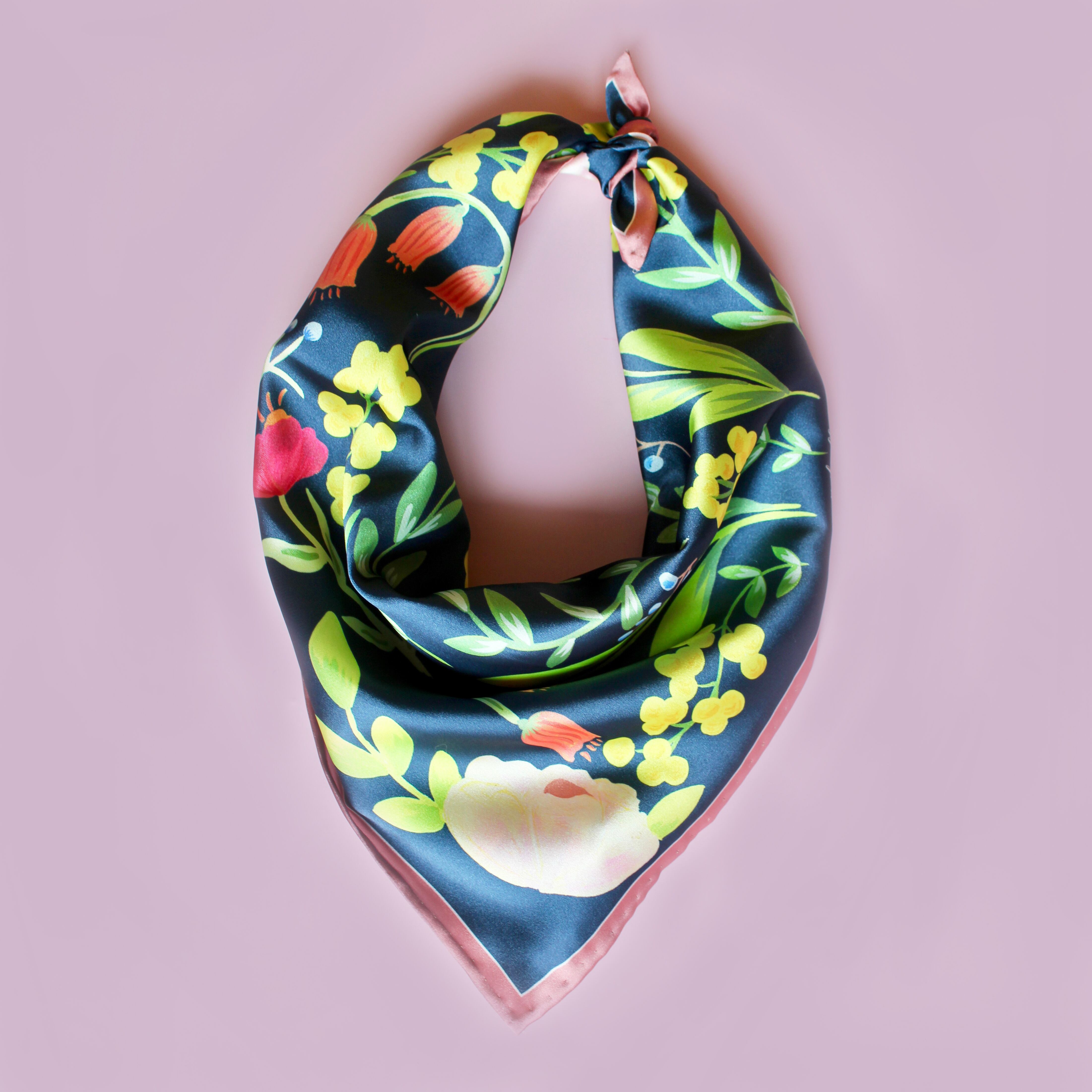 首回りでキュッと結んだり、バッグの持ち手にさっと巻いたり。コーディネートのアクセントとして大活躍するCommon Threadのオリジナルスカーフ。