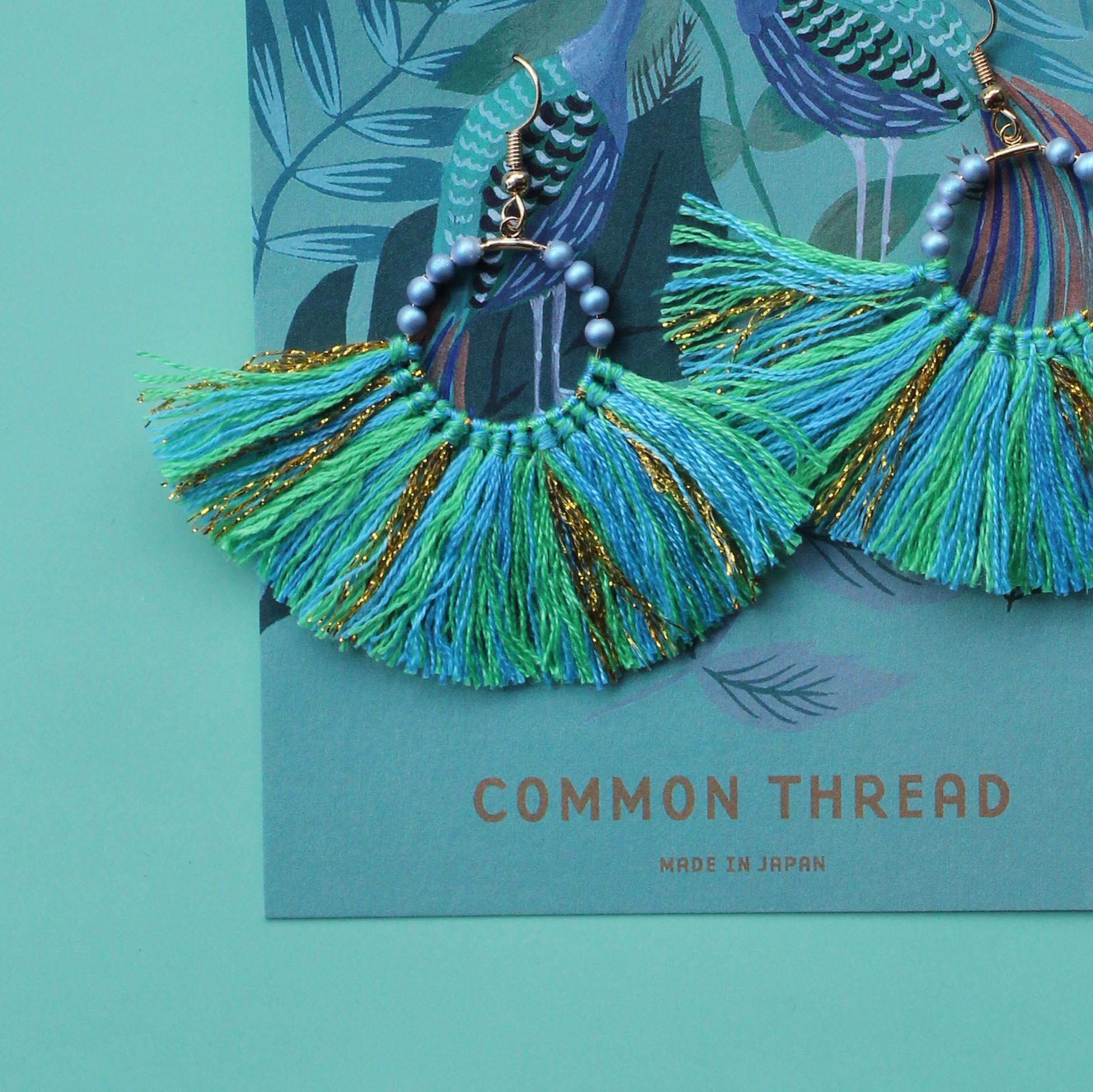 Common Threadのターコイスブルーとゴールドがアクセントになった、存在感抜群のタッセルピアス&イヤリング。